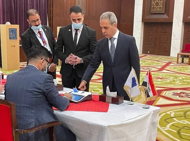 وادلى المالكي والخزعلي وعبد المهدي باصواتهم في محطة الاقتراع الواقعة في فندق الرشيد في بغداد والمخصصة لكبار الشخصيات للتصويت في انتخابات مجلس النواب لعام 2025.