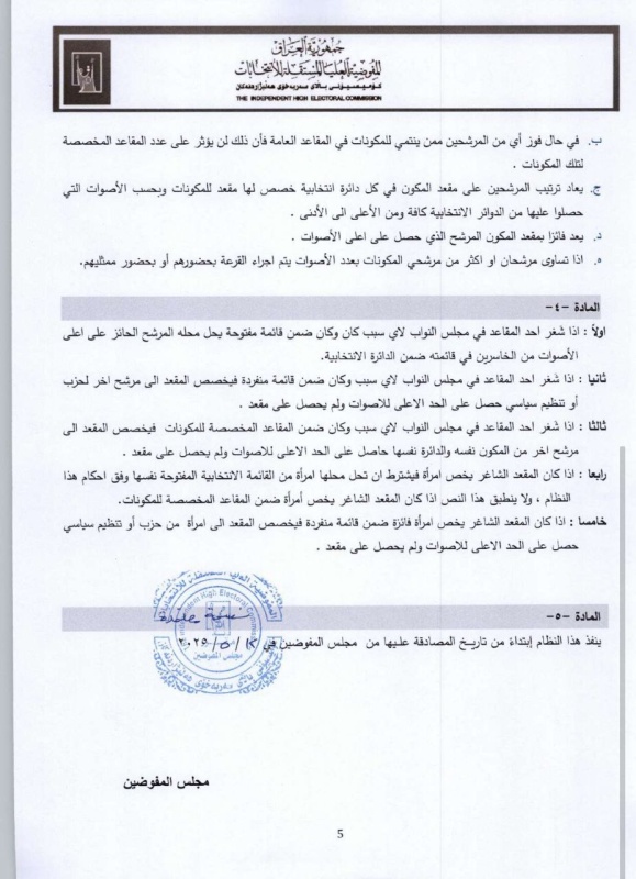 تنشر منصة "واضح"، اليوم الجمعة، نظام توزيع المقاعد واستبدال الأعضاء لانتخابات مجلس النواب 2025