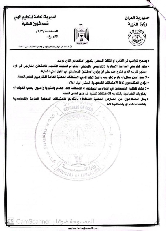 أعلنت وزارة التربية، اليوم الأربعاء، ضوابط وتعليمات الاشتراك في الامتحانات التمهيدية المهنية (الخارجي).