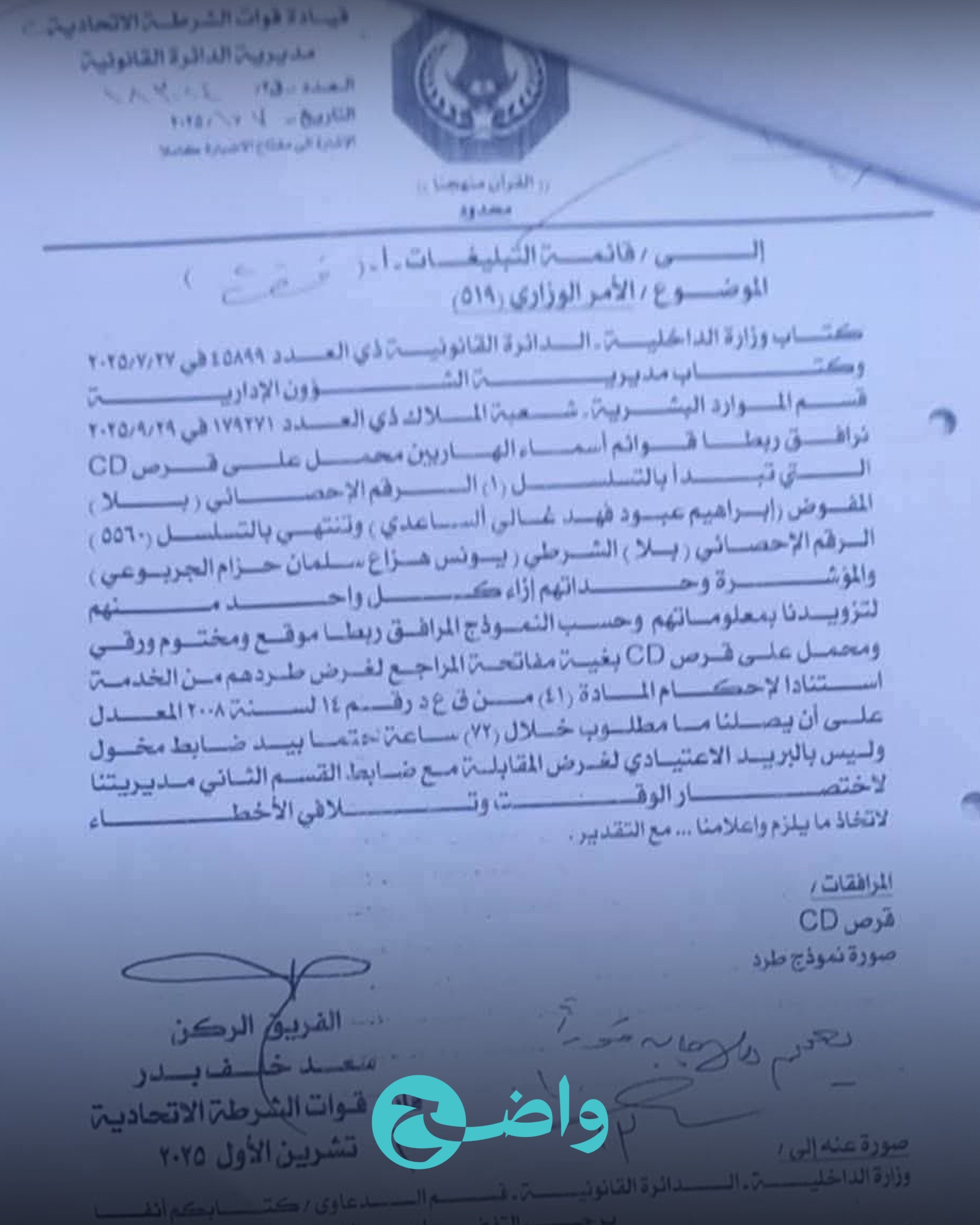 وقال مصدر مسؤول في الوزارة إن "الطرد يشمل المنتسبين على مستوى الألوية المختلفة، مؤكداً أن الهدف من القرار هو إعادة الانضباط إلى صفوف الجهاز الأمني وتعزيز الالتزام بالقوانين الداخلية والخدمة النظامية".