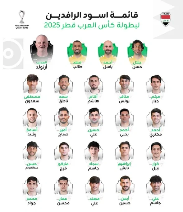 تنشر "واضح"، اليوم الأحد، قائمة أسود الرافدين في كأس العرب 2025.