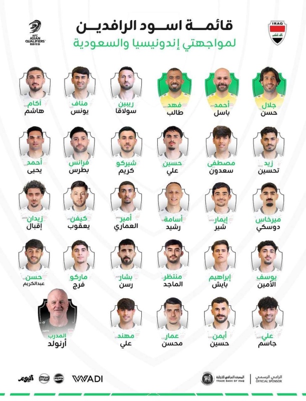 تنشر منصة "واضح"، اليوم الجمعة، قائمة المنتخب العراقي لخوض التصفيات الأسيوية المقبلة.