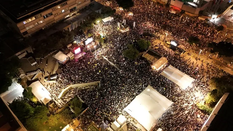 وسار المتظاهرون الذين قدّرت الشرطة عددهم بنحو 70 ألفاً، بشكل سلمي في وسط برشلونة خلف لافتة حمراء عملاقة كتب عليها "أوقفوا الإبادة الجماعية في فلسطين. أوقفوا تجارة السلاح مع إسرائيل".