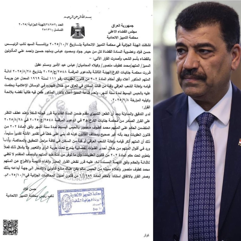 أصدرت محكمة التمييز الاتحادية، اليوم الأربعاء (8 تشرين الأول 2025)، قراراً بنقض الحكم الصادر بحق النائب السابق محمد الدايني والقاضي بحبسه، بعد إدانته سابقاً بتهمة "إهانة الشعب العراقي".