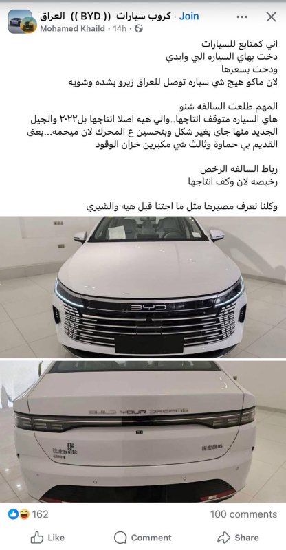 وفي الإطار ذاته، أوضح المواطن ماجد معطي الجبوري، أن "الوكالة التي أعلنت عن سيارات BYD في العراق ليست وكالة رسمية تابعة مباشرة للشركة الأم كما يُروّج لها، بل هي تاجر خاص فتح معرضًا باسم الشركة".
